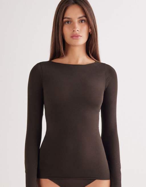 Intimissimi Boat-neck ultralight cotton top in mocha brown