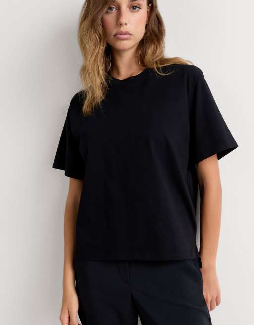 Intimissimi Boxy fit short-sleeved cotton top in black