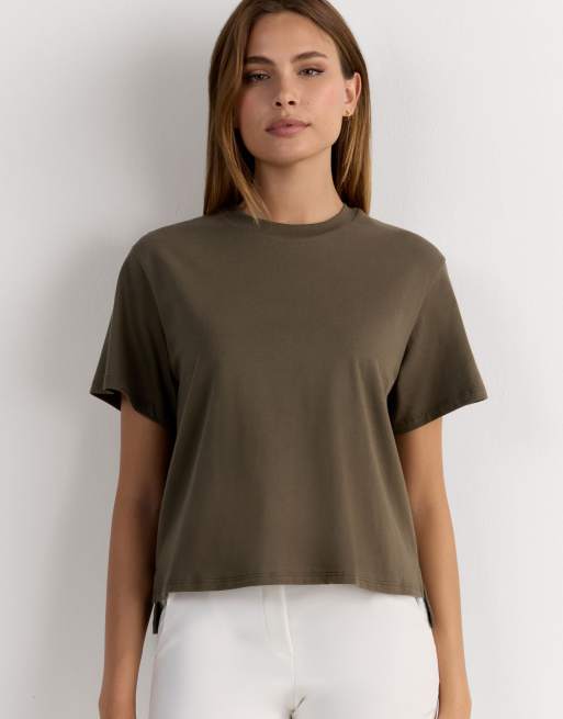 Intimissimi Boxy fit short-sleeved cotton top in safari green
