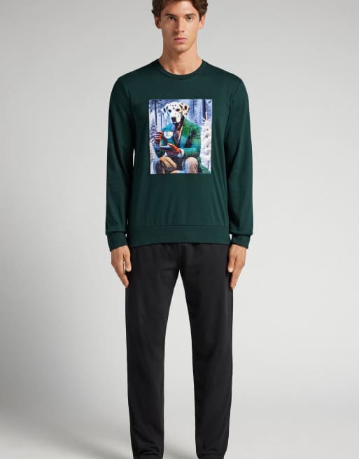 Intimissimi Dalmatian print long cotton pyjamas in dark green