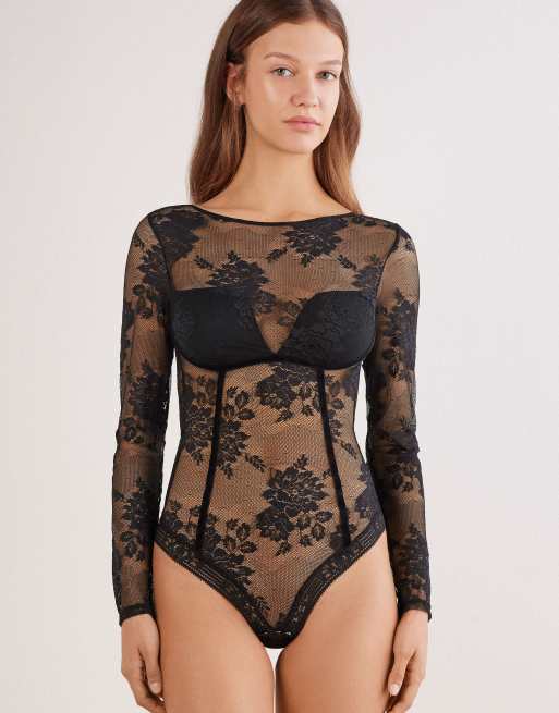 Intimissimi La femme fatal long-sleeve bodysuit in black