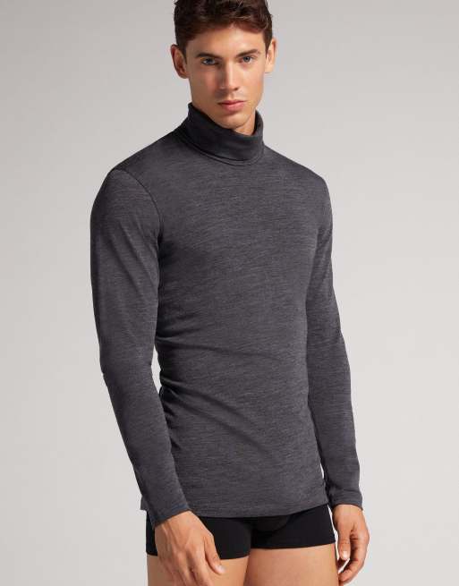 Intimissimi Long-sleeve high-neck merino-wool top in charcoal grey