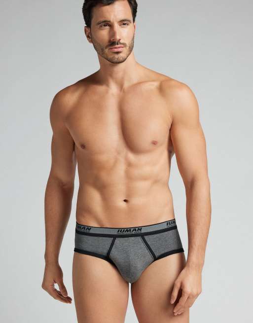 Intimissimi Men’s superior cotton briefs with logo in graphite grey blend black
