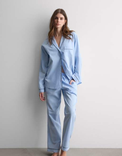 Intimissimi NI Chambray Cotton and Modal Full-Length Pyjamas in chambray blue