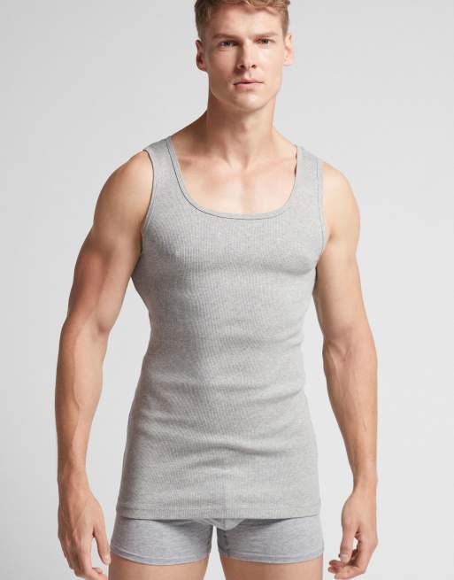 Intimissimi Ribbed cotton vest top in light grey melange