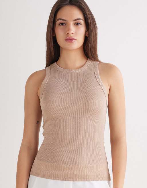 Intimissimi Ribbed lamé cotton vest top in rose lame