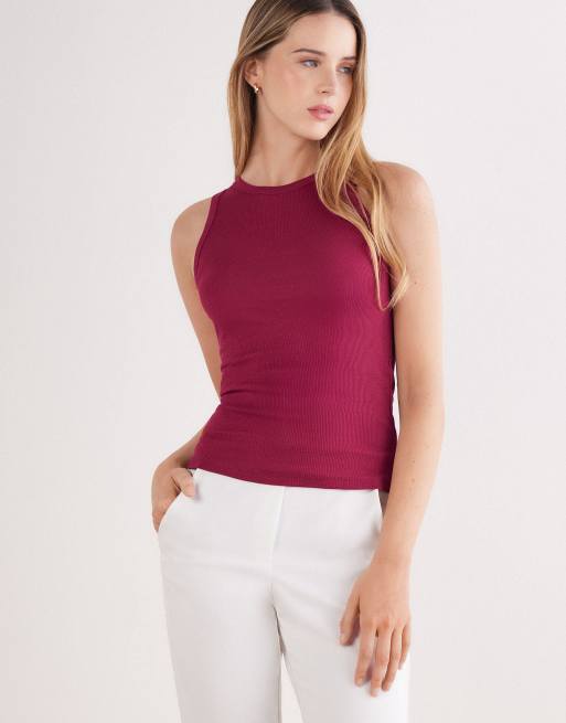 Intimissimi Ribbed superior cotton vest top in beet red