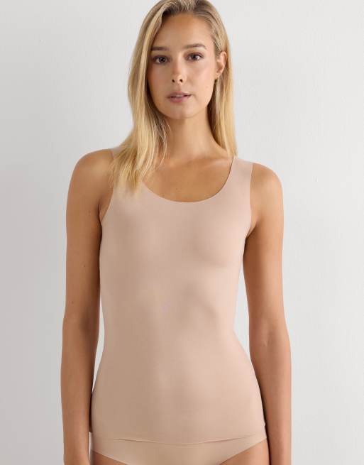 Intimissimi Round-neck raw-cut cotton vest top in honey soft beige