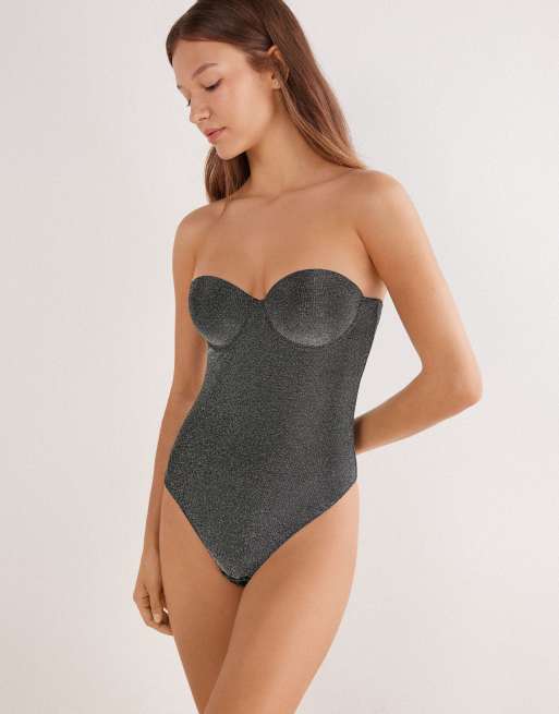 Intimissimi Shimmering passion lamé giada bodysuit in black silver lame