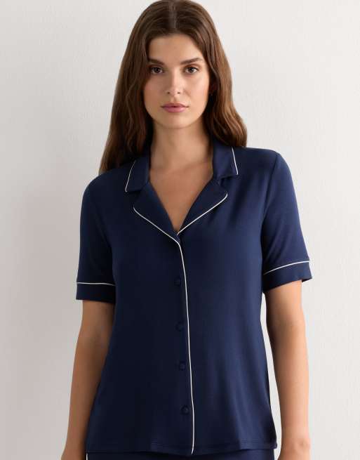 Intimissimi Short-sleeved button-down modal top in rich blue