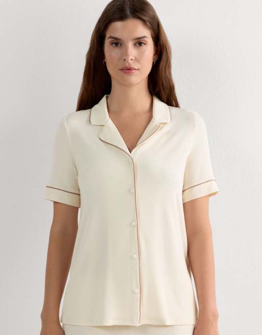 Intimissimi Short-sleeved button-down modal top in vanilla ivory