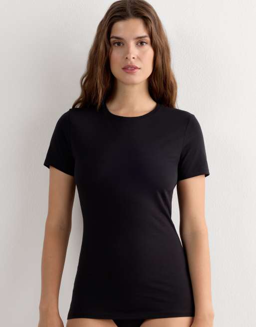 Intimissimi Short-sleeved ultrafresh cotton top in black