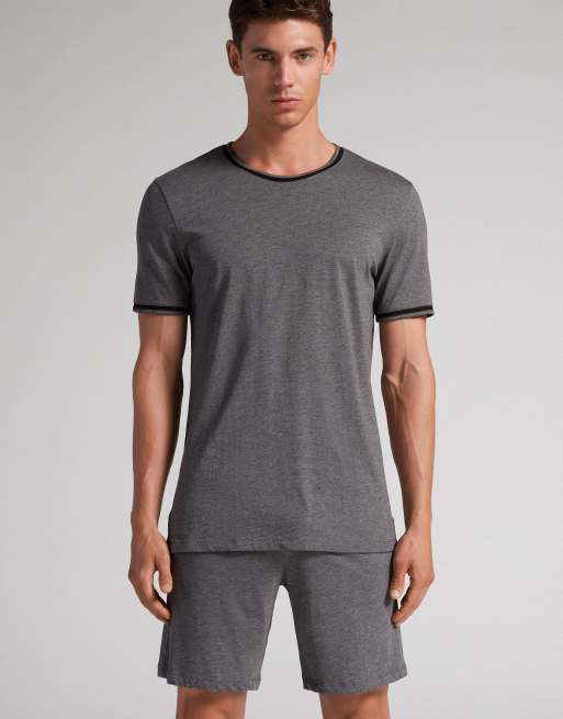 Intimissimi Short superior cotton pyjamas in charcoal grey melange