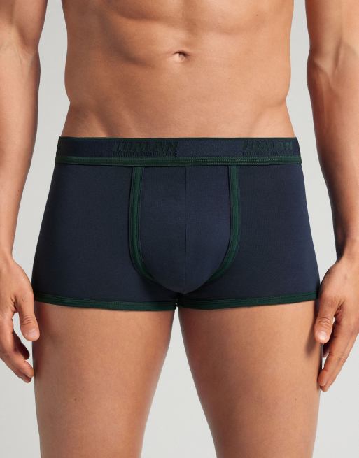 Intimissimi Superior cotton boxers with logo in intense blue and dark green