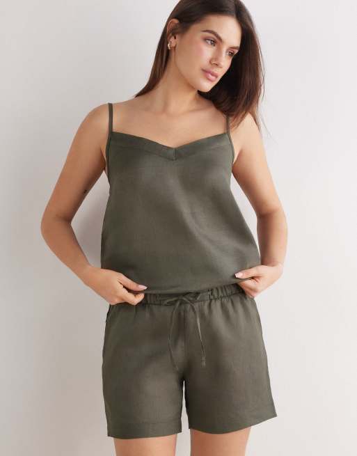 Intimissimi The pure linen plain-weave linen shorts in safari green