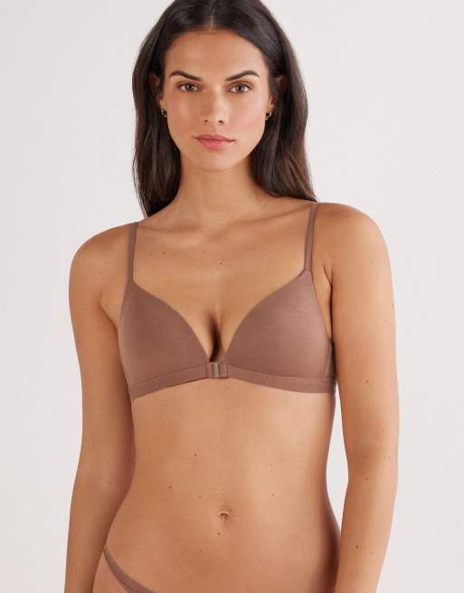 Intimissimi Tiziana ultralight cotton triangle bra in caramel dark beige