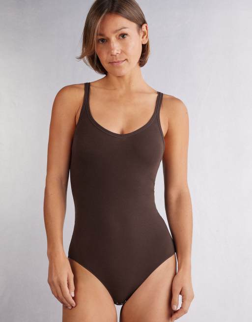 Intimissimi Ultralight cotton vest body in mocha brown
