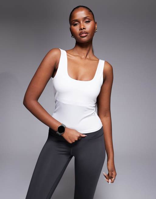 4505 - Active - Canotta bianca con scollo squadrato e reggiseno interno