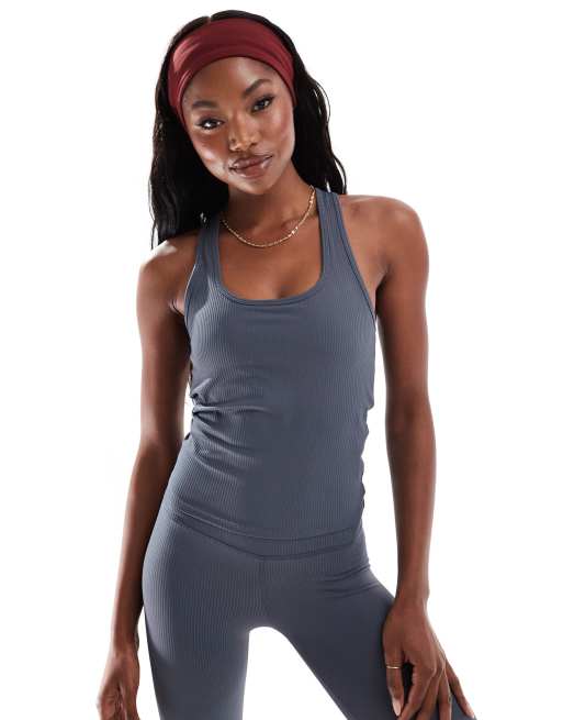 4505 - Active - Canotta blu navy a coste con reggiseno interno e incrocio sul retro