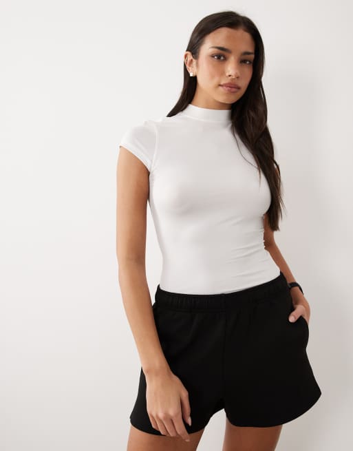 4505 Active - T-shirt slim a asciugatura rapida bianca con collo a lupetto