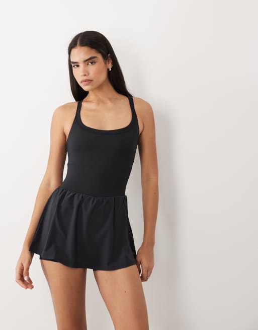 4505 - Active - Vestito da corsa nero con reggiseno interno e pantaloncini