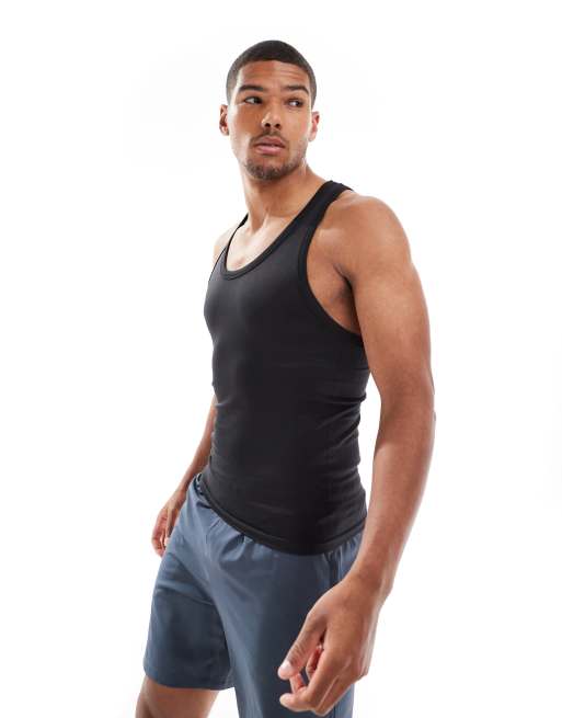 4505 - Canotta da allenamento slim senza cuciture nera