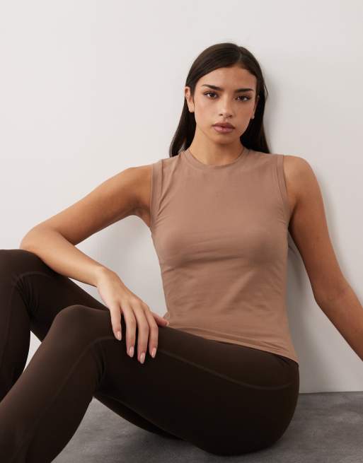 4505 - Everyday - Top senza maniche attillato in cotone con finitura quick dry fulvo
