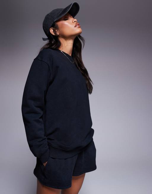 4505 - Felpa oversize da allenamento in tessuto pesante quick dry nero slavato