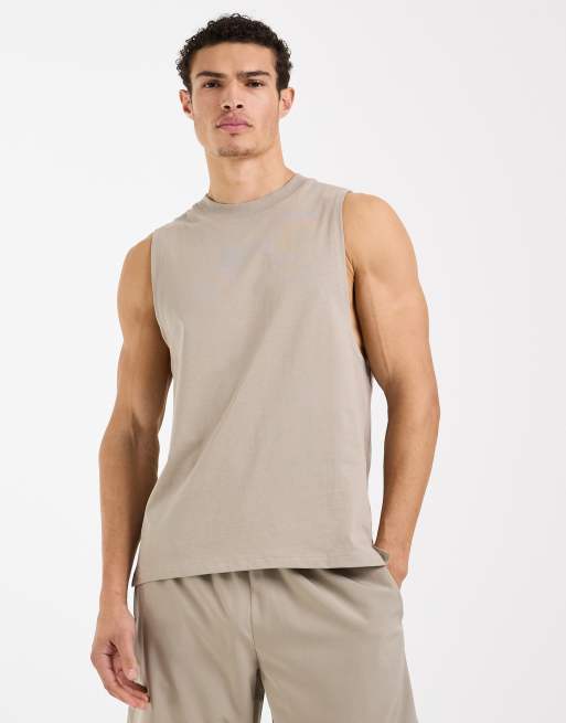 4505 - Icon - Canotta da allenamento greige in cotone quick dry con giromanica ampio