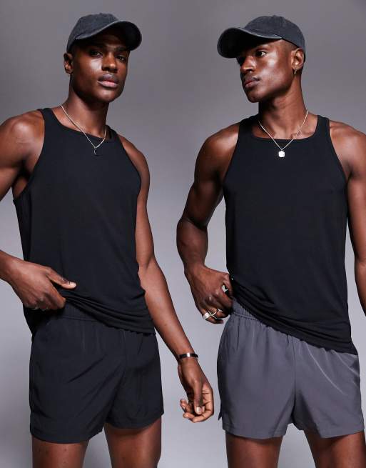 4505 - Icon - Confezione da 2 paia di pantaloncini da corsa quick dry da 8 cm neri e grigio antracite con tasca per il telefono sul retro