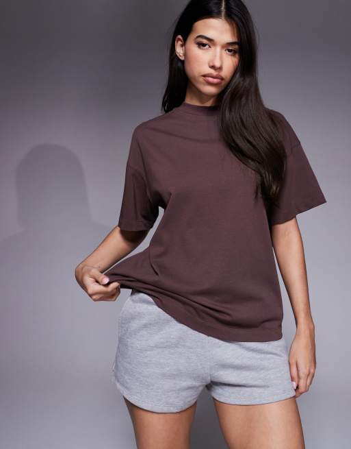 4505 - Icon - T-shirt oversize pesante in cotone marrone slavato con finitura quick dry