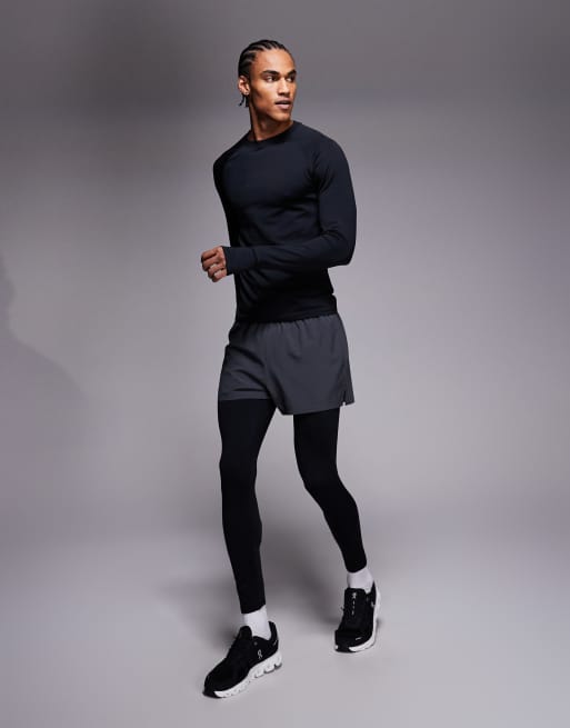 4505 - Leggings base layer termici da corsa neri con tasca per il telefono
