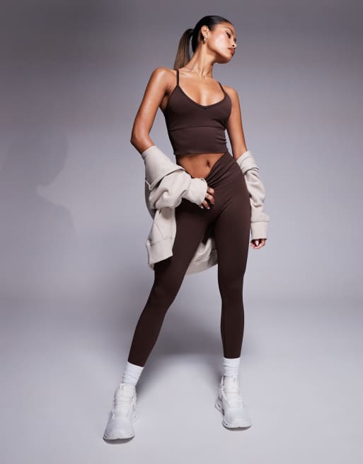 4505 - Leggings da palestra a vita alta lisci senza cuciture color mogano