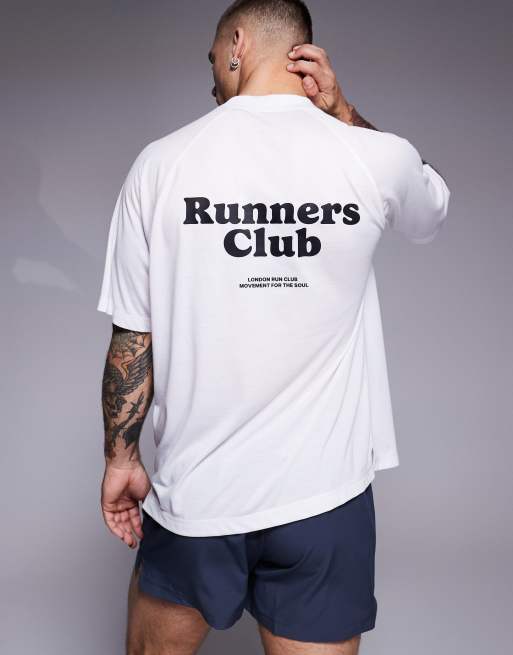 4505 - Run Club - T-shirt oversize in tessuto tecnico ad asciugatura rapida bianco con stampa sul retro