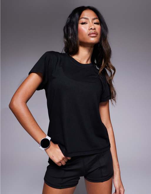 4505 - T-shirt da corsa nera squadrata in rete quick dry