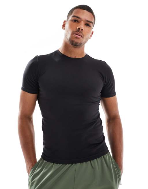 4505 - T-shirt slim senza cuciture da allenamento nera