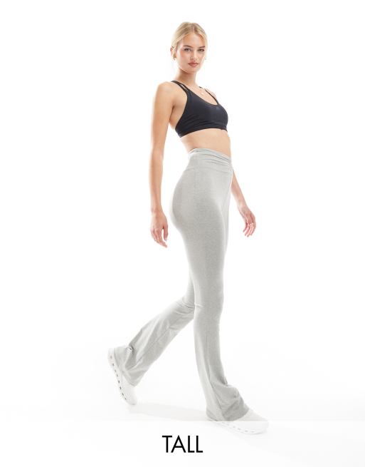 4505 Tall - Leggings a zampa slim grigio mélange a vita alta arricciati sul davanti