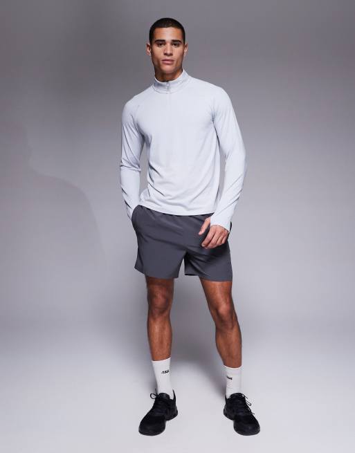 4505 - Top da allenamento quick dry a maniche lunghe grigio mélange con zip corta .