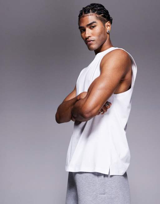 4505 - Top senza maniche oversize in cotone pesante bianco con stampa sulla schiena e finitura quick dry