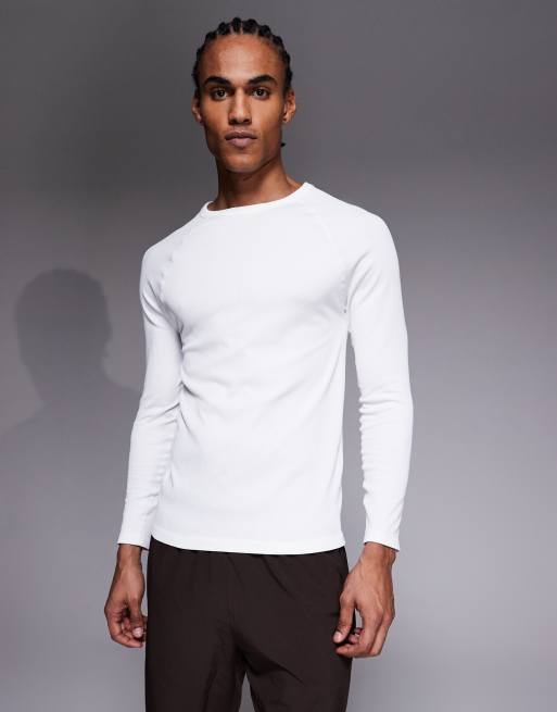 4505 - Top slim a maniche lunghe raglan bianco a coste senza cuciture