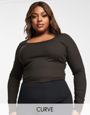 ASOS 4505 Curve - Top sportivo a maniche lunghe marrone a coste