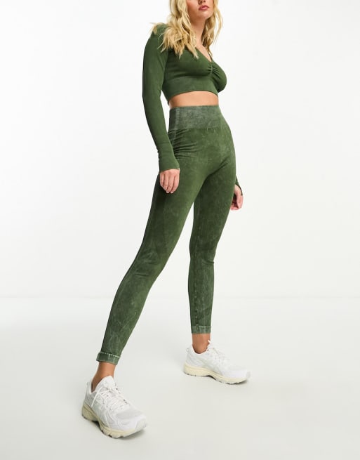 ASOS 4505 - Leggings arricciati senza cuciture e top a maniche lunghe lavaggio acido kaki