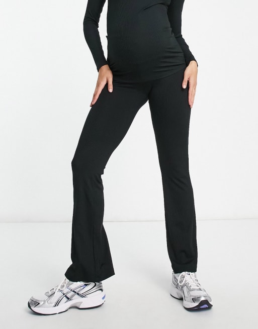 ASOS 4505 Maternity - Top a maniche lunghe e leggings a zampa neri a costine