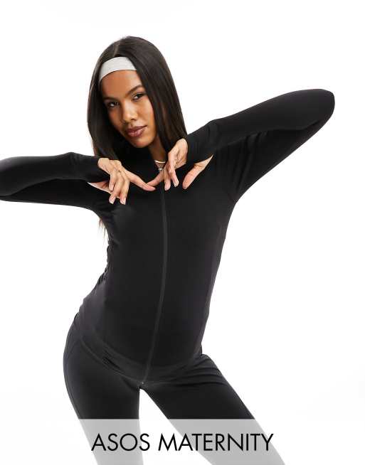 ASOS 4505 Maternity - Top da allenamento a maniche lunghe senza cuciture con zip