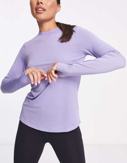 ASOS - 4505 - Top da running a maniche lunghe lilla con logo a icona