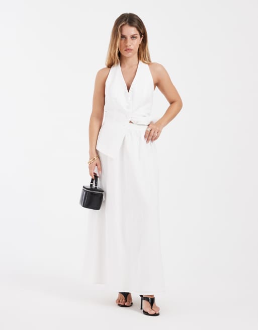 4th + Reckless Petite - Coordinato misto lino bianco con gonna lunga e gilet allacciato al collo