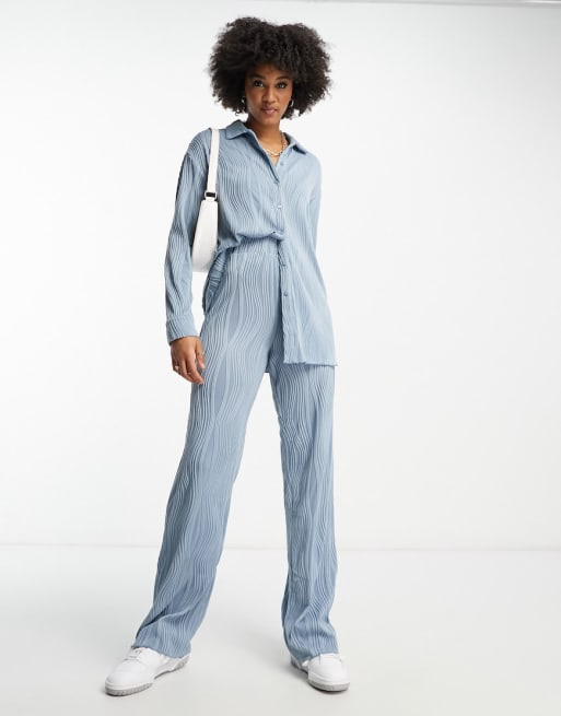 4th & Reckless Tall - Coordinato con camicia plissé e pantaloni con fondo ampio blu