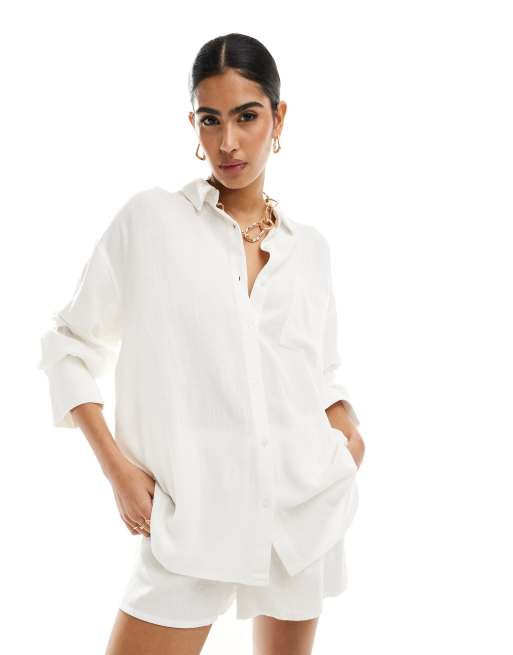 4th & Reckless - Camicia oversize bianca effetto lino in coordinato
