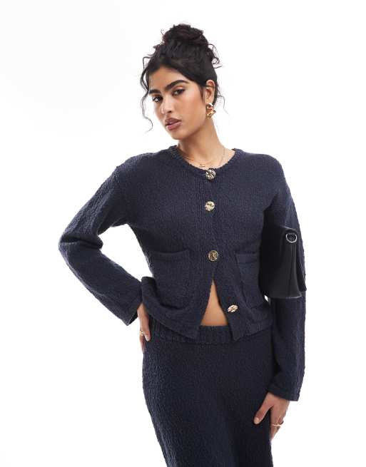 4th & Reckless - Cardigan blu navy testurizzato in maglia con tasche e bottoni oro in coordinato