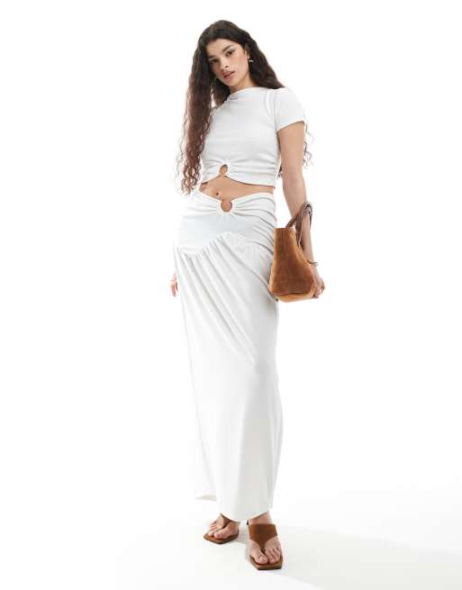 4th + Reckless - Coordinato bianco sinuoso con top con scollo dritto e gonna lunga con vita scesa